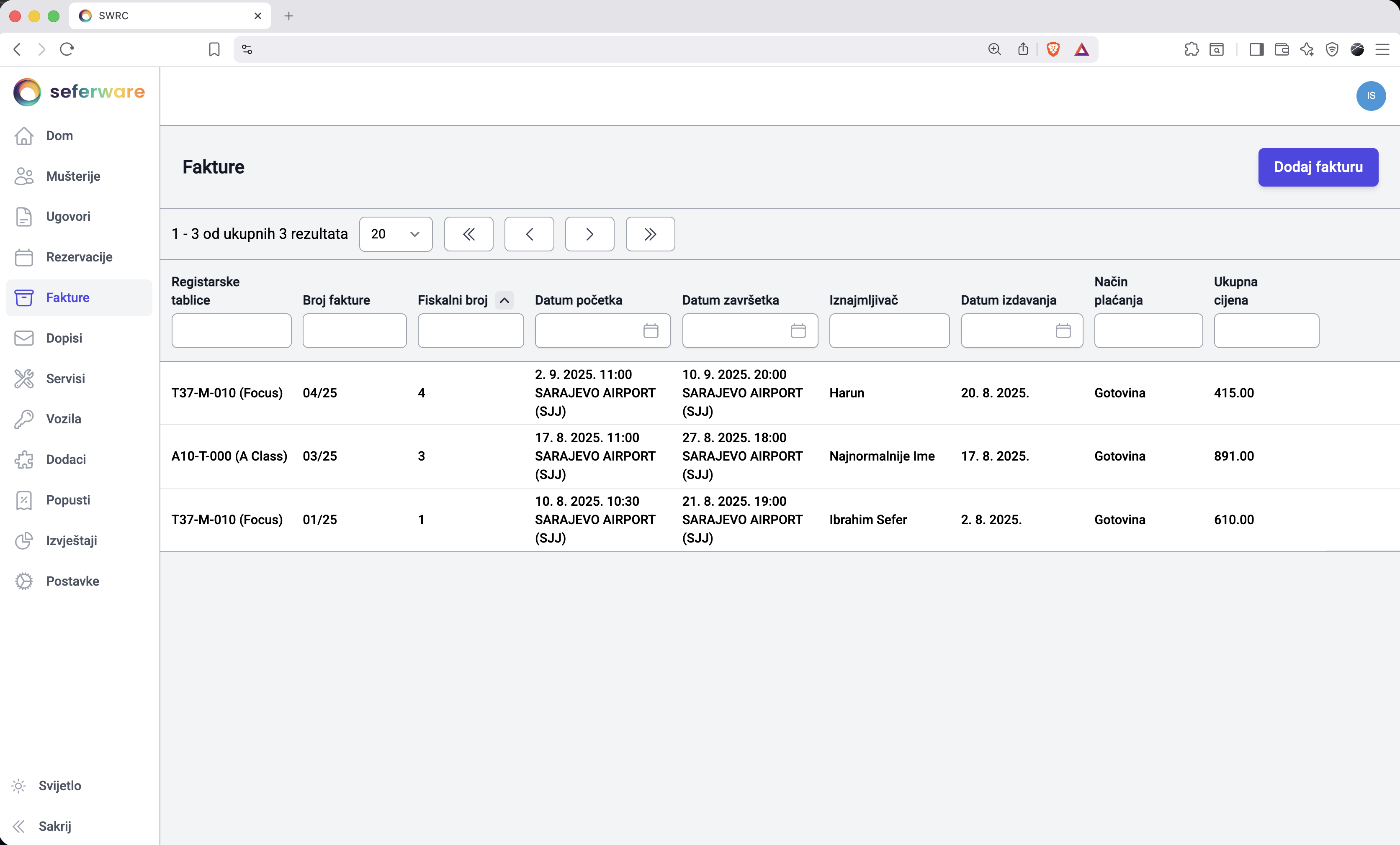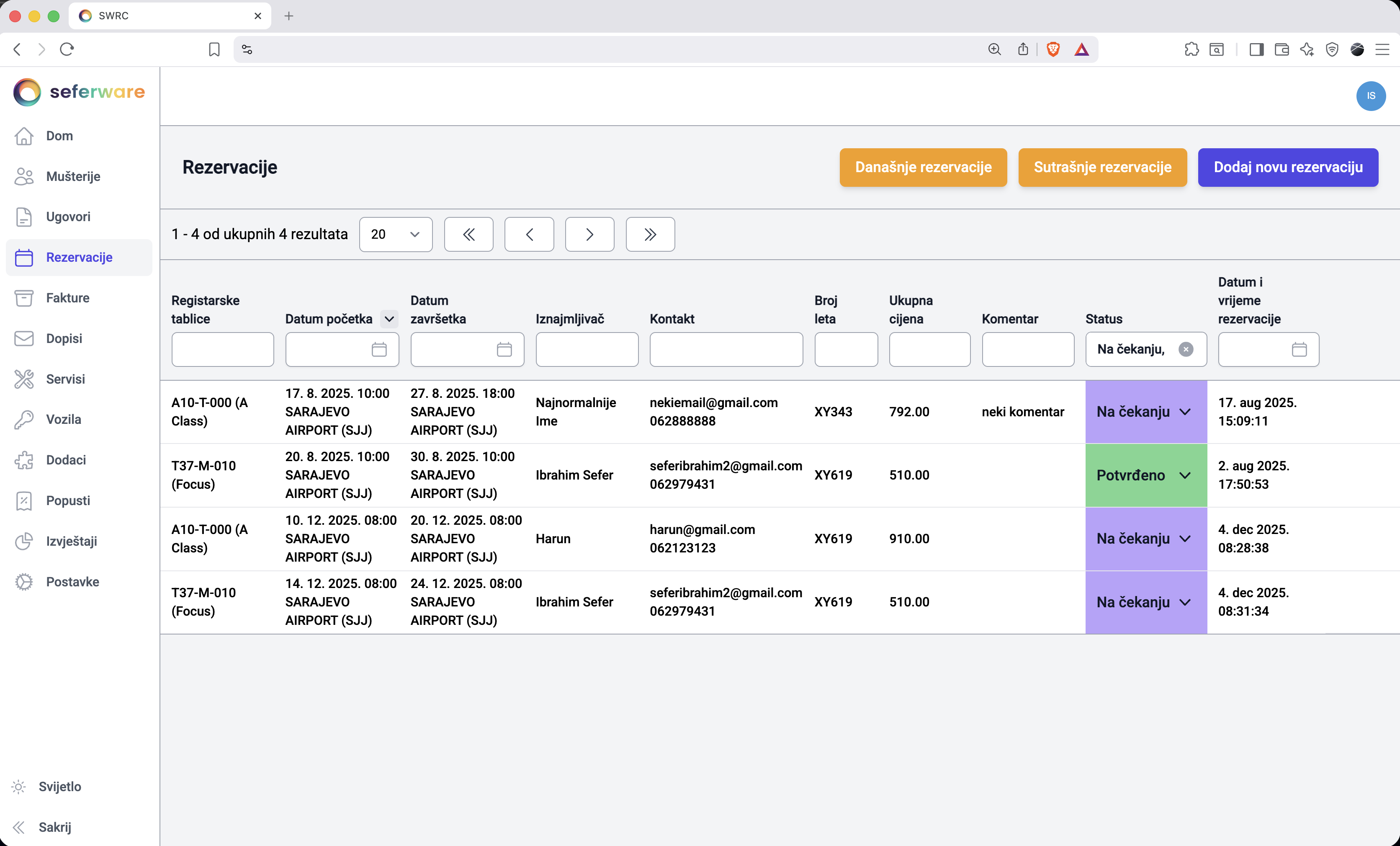 Popunite formu i dobit ćete odgovor u najkraćem roku o tome kako da Seferware pomogne vašem rent-a-car biznisu.